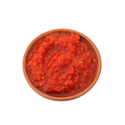 3. Doe er de tomatenpuree bij en kruid met de specerijen, peper en zout. Laat ongeveer 10 minuten sudderen op middelhoog vuur en roer af en toe.