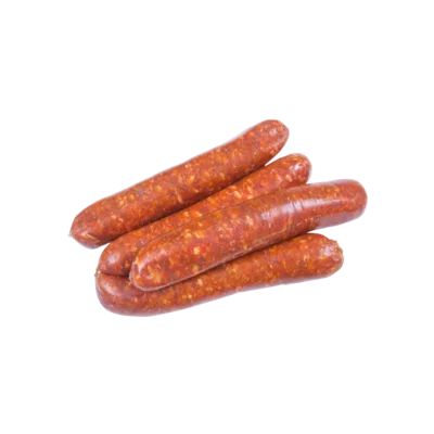 2. Snijd de merguezworst in stukken en bak deze in een pan met olijfolie, meng vervolgens met de tomatenpuree, verse tijm, zout en peper.
